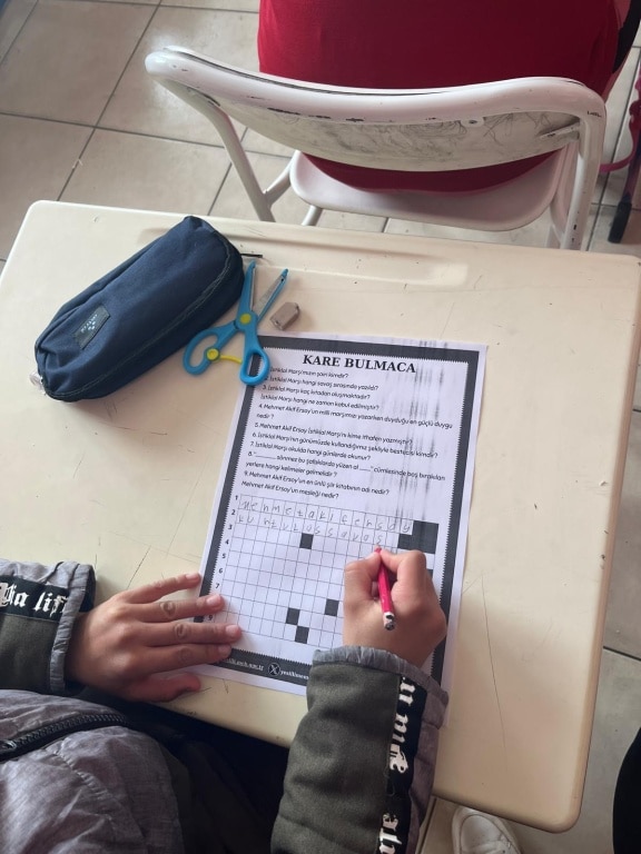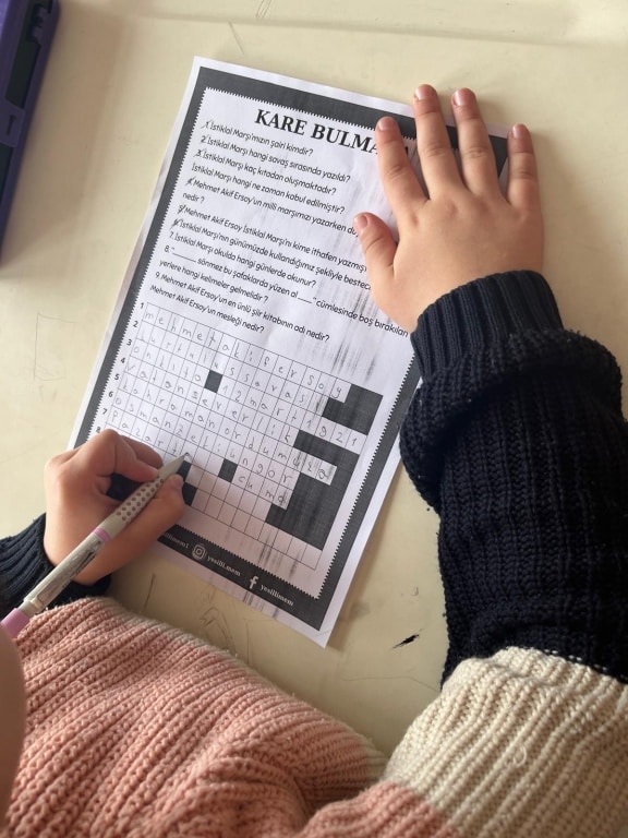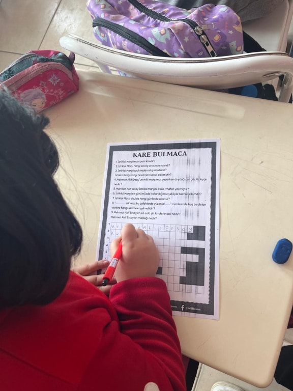 Tüm sınıflarda gerçekleştirilen “Kelime Türetme” etkinliği ile öğrenciler, seçilen kelimelerden türettikleri yeni sözcüklerle kelime dağarcıklarını genişletti. Ayrıca, milli şairimiz Mehmet Akif Ersoy’un şiirleri okunarak öğrencilerin duygu ve düşünce dünyasına katkı sağlandı. “Anlamını Bul” etkinliği ile de öğrenciler, Mehmet Akif Ersoy’un dizelerinde geçen kelimelerin anlamlarını araştırarak, kelimelerin derinliklerine inmeye çalıştılar.