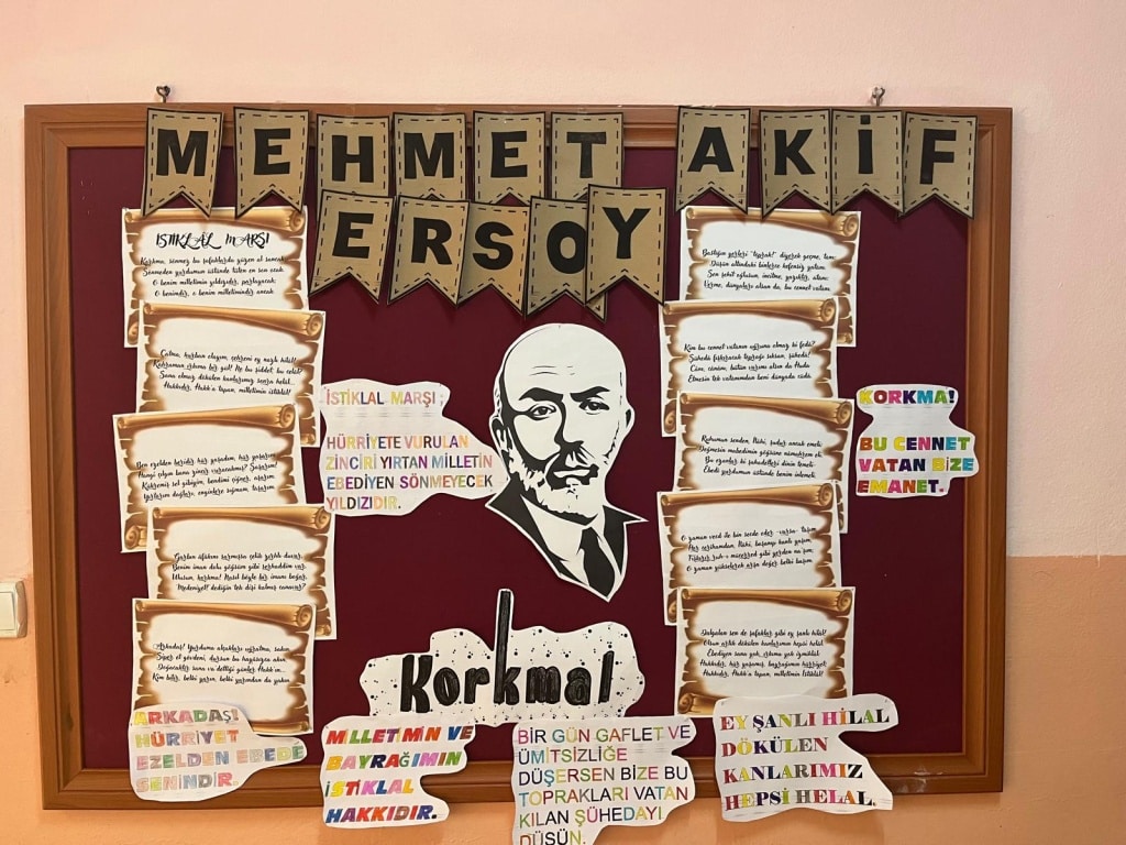 Bu kapsamda, öğrencilerimizden İstiklal Marşı’ndan seçilen en az üç kelimeyi içeren anlamlı cümleler oluşturmaları ve bu cümleleri görselleştirerek afiş tasarlamaları istendi. Öğrencilerimiz, büyük bir özenle hazırladıkları çalışmalarını okul panolarında sergileyerek, dilimizin zenginliğini ve İstiklal Marşı’nın anlamını bir kez daha gözler önüne serdi.